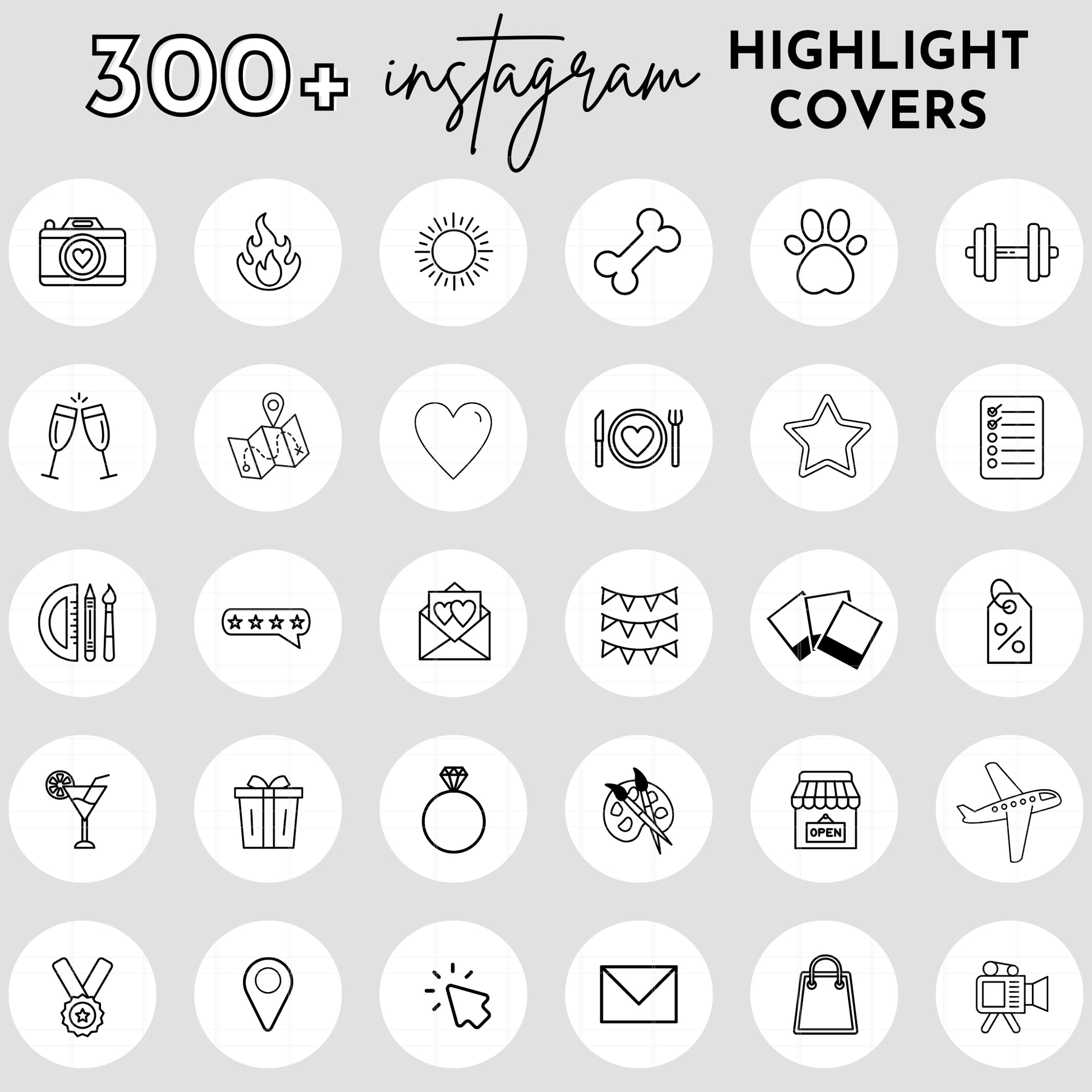 300+ White Line Art Instagram Highlight Cover Icons